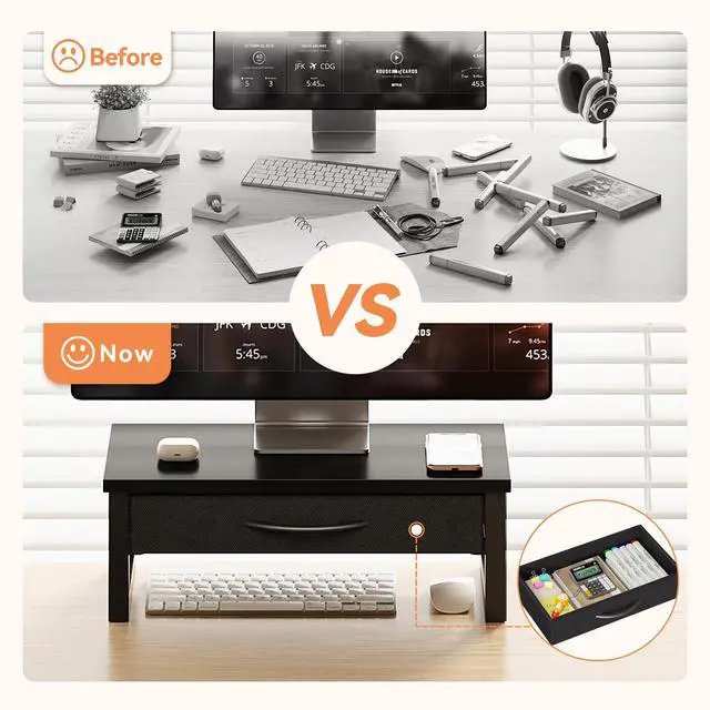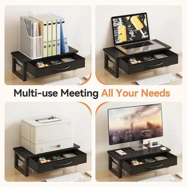 This desk stand for monitor adjusts your monitor to the appropriate eye level, relieve stress on the neck, shoulders and back, make you feel more comfortable.