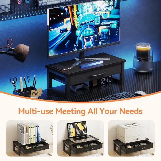 This monitor stand riser looks very modern, wooden tabletop, iron pipe legs, drawer with handle, suitable for any space. The large storage space provides a great helper for you to organize and store.