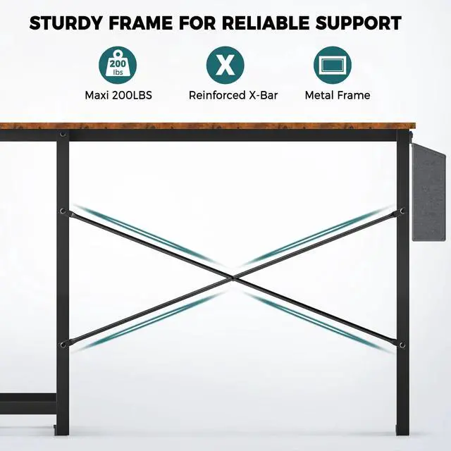 - Sturdy FrameMade of high quality, this CONCETTA corner desk with storage will give you a smooth user experience. With a sturdy metal frame, our office desk in L-shape will provide reliable support for you, with a maximum load of 200 lbs. construction enhances both functionality and aesthetics.