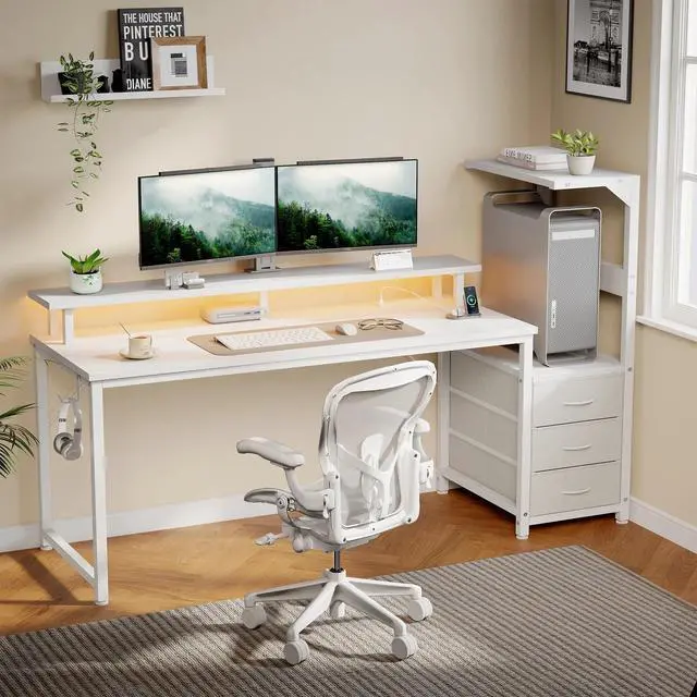 - Smart Storage Design Includes 3 fabric drawers, a side hook, and a reversible open shelf for a PC tower, keeping your workspace neat and flexible.