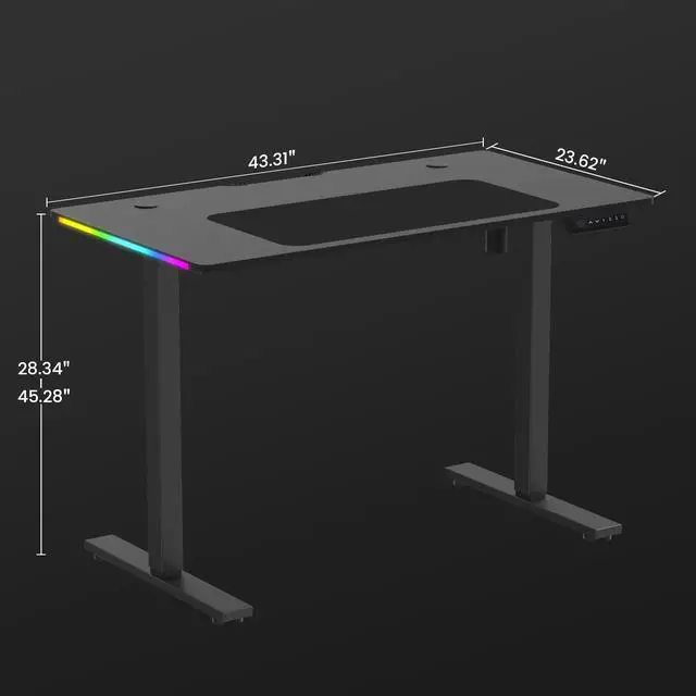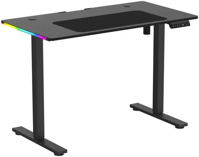 Transform your gaming setup with our Height Adjustable Gaming Desk featuring LED Lights! The dynamic RGB lighting can be customized to match your mood, enhancing the atmosphere of your gaming or work environment. With the memory mode, you can easily save your preferred desk height and have it automatically adjust to the same setting with a simple touch. The adjustable height feature allows you to seamlessly switch between sitting and standing positions, promoting comfort and productivity throughout your day. Designed with a sleek, modern aesthetic, this desk combines both style and functionality, making it a perfect addition to any gaming or workspace. Crafted from durable, high-quality materials, the desk is built to withstand even the most intense gaming sessions and daily use. Elevate your gaming experience and workspace efficiency with our Height Adjustable Gaming Desk with LED Lights!