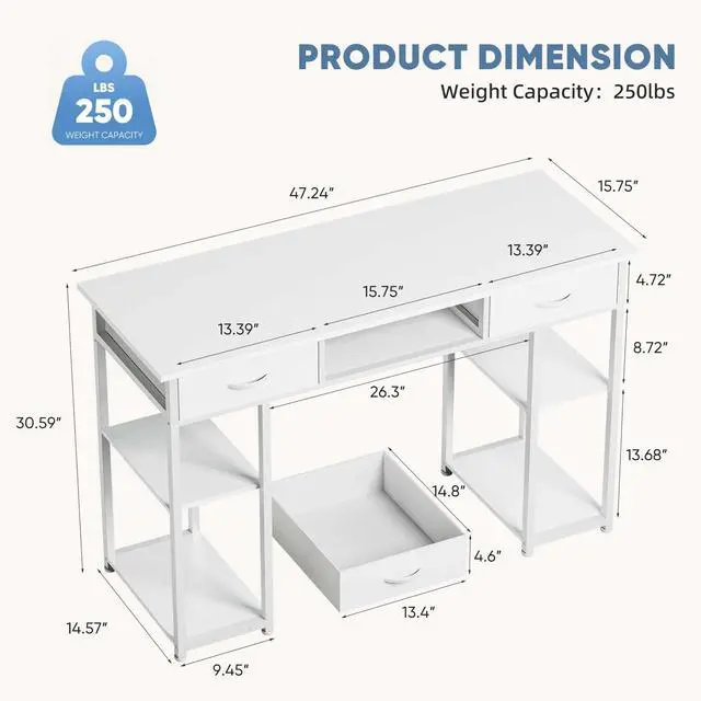 - Hassle-Free Assembly: Set up your new desk effortlessly with our clear instructions and all the necessary hardware included. Whether you're new to assembling furniture or a seasoned DIY enthusiast, youll have your home office ready in no timeno complicated steps, just quick and easy assembly.