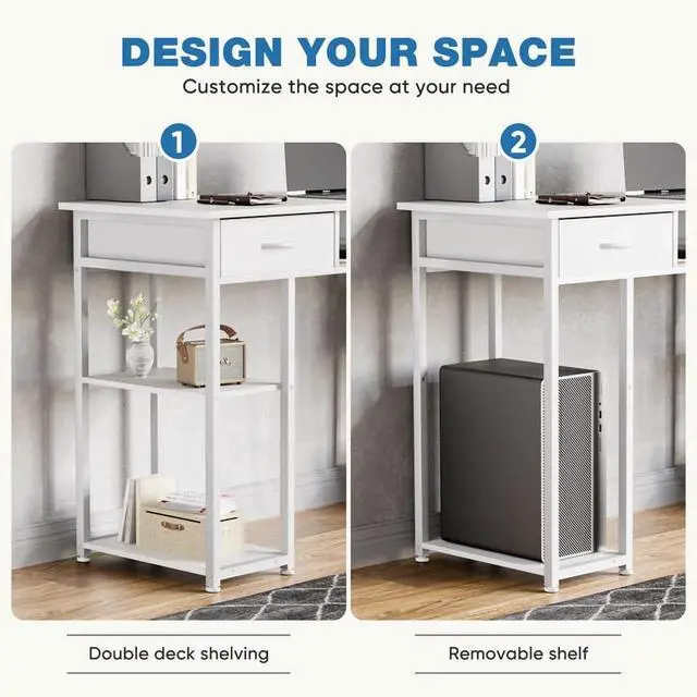 - Smart Storage Solutions: Stay organized with practical, easy-to-access storage features. The desk includes two fabric drawers, a spacious middle storage cube, and adjustable shelves that allow you to store your documents, office supplies, and personal items. Keep your workspace neat and efficient without sacrificing style.
