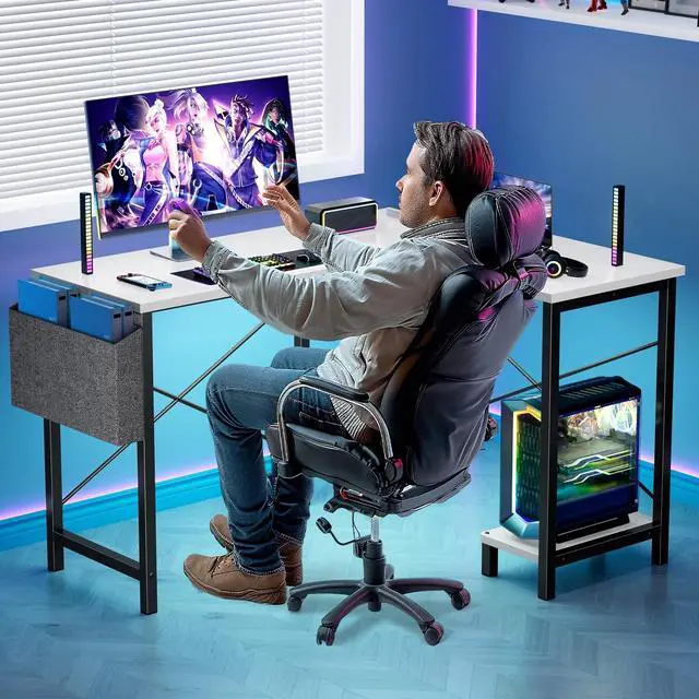 - User-Friendly Features This desk for the bedroom is designed with the user's convenience in mind. The inclusion of a side storage bag allows for easy organization of essential items such as gaming accessories, office supplies, or personal belongings. The built-in CPU tray at the bottom provides a dedicated space to securely place your computer tower, keeping it off the floor and ensuring proper ventilation.