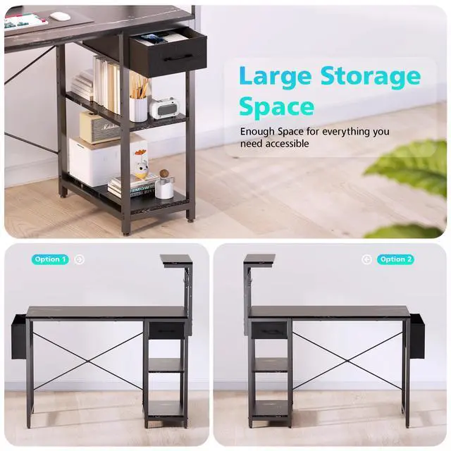 - Reversible Desk: This computer desk features a reversible design, allowing you to install the storage shelves and monitor stand on the left or right according to your needs. Perfectly fit any corner area.