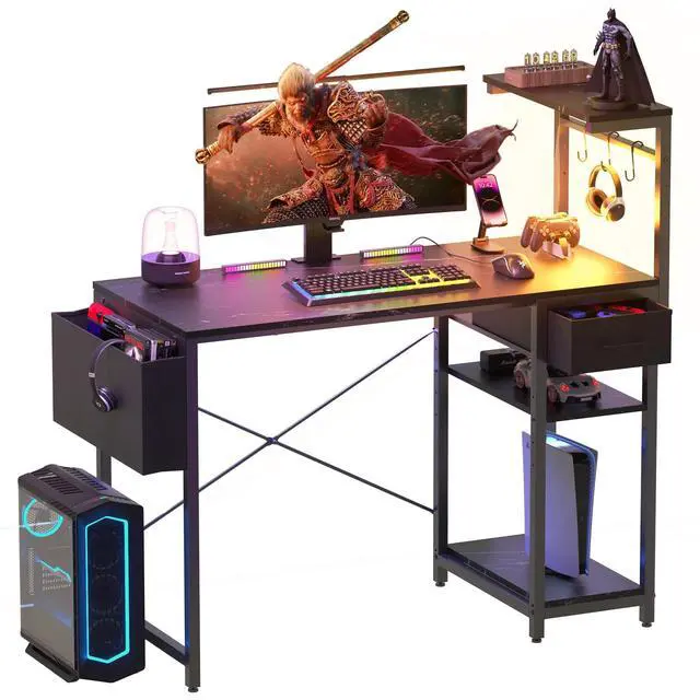 - Organized Layout: Keep your area tidy with a Fabric drawer, 4 shelves and storage bag, perfect for a productive gaming or working session.
