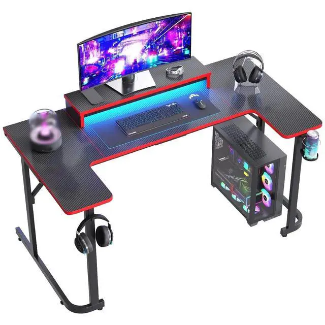 - Bestier 59" U-Shaped Gaming Desk with Monitor Stand, LED Lights& Headset Hooks, Home Office, Carbon Fiber Black