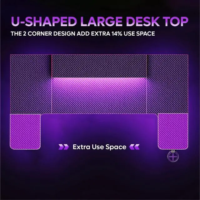 - Large Desktop: 59 inch U-shaped computer office desk with a generous desktop, provides ample room for your gaming or office setup. Whether youre using it for gaming or work, its spacious surface, coupled with its unique features, make it a standout addition to any room. Enjoy the convenience and style that this desk brings to your space.