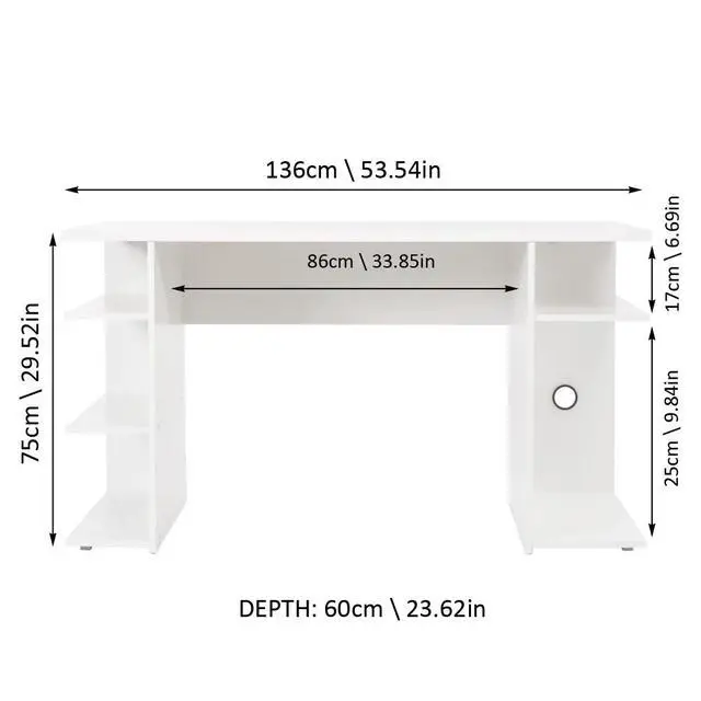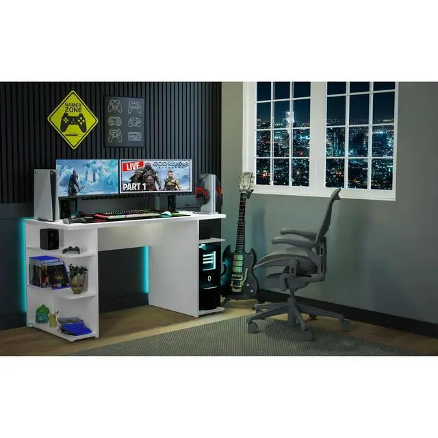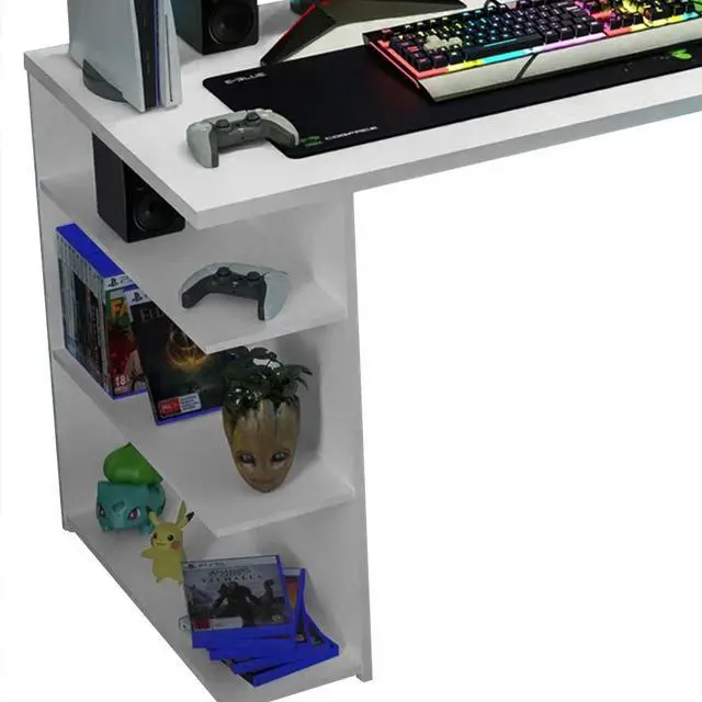 Catering to the preferences of adults, the Madesa White Gamer Table offers both comfort and ample space. Its sleek, modern design seamlessly integrates functionality and style, ensuring an elevated gaming experience. This versatile gaming desk accommodates a keyboard, monitor, mouse, and speakers, making it perfect for even the most demanding gamers. Crafted from ecologically sourced engineered wood, Madesa products prioritize sustainability and durability. Beyond gaming, it serves admirably as a home office desk, study area, and more, adding a touch of sophistication to your living space. Your home's comfort and style are our utmost priorities.