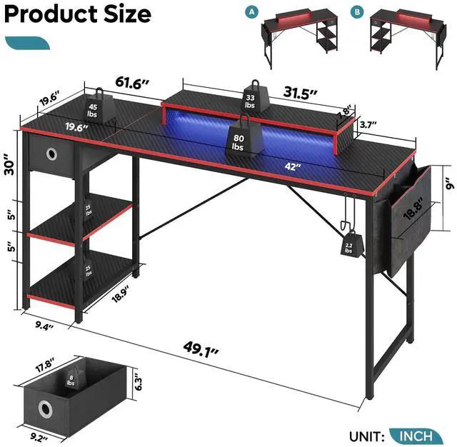 Ergonomic Monitor Stand: Elevate your screens with the ergonomic 31.5" monitor stand to reduce neck strain during marathon gaming or work sessions.