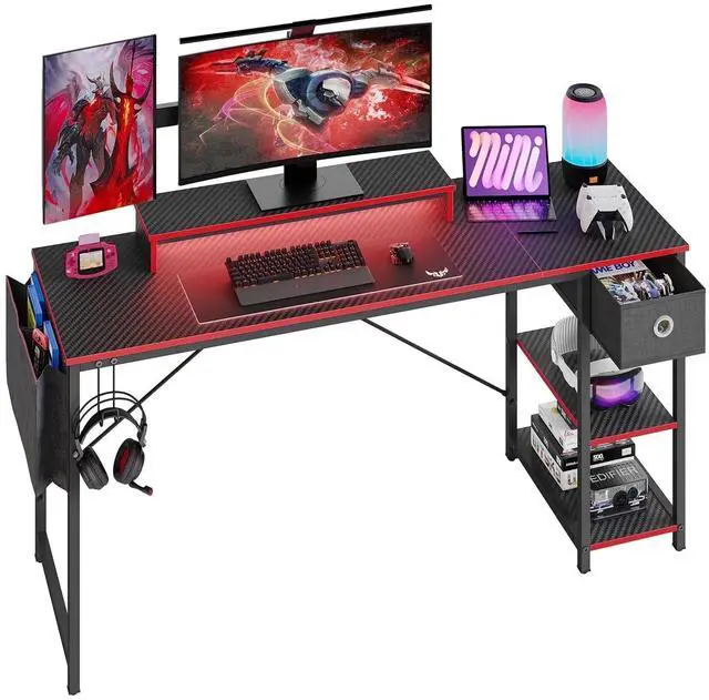 Customizable Shelves: Customize your setup with reversible 2-tier shelves that can be positioned on the left or right, and use the removable middle tier to store your CPU or console.