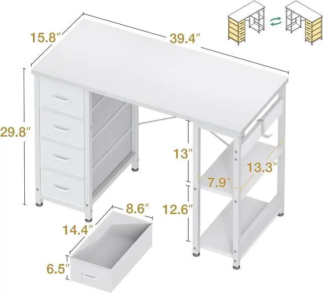 Reversible Design for Flexible SetupThe reversible design allows you to assemble the corner desk on either the left or right side to suit your room layout. Customize your workspace for maximum comfort and efficiency.
