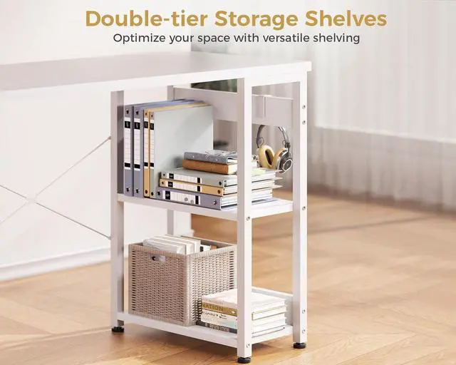 Two-tier Storage ShelvesODK office desk features double storage shelves that help keep your desktop tidy. Use them as a bookshelf or organizer to meet your daily storage needswhether at home or in the office. A perfect addition to any workspace, especially for working from home.