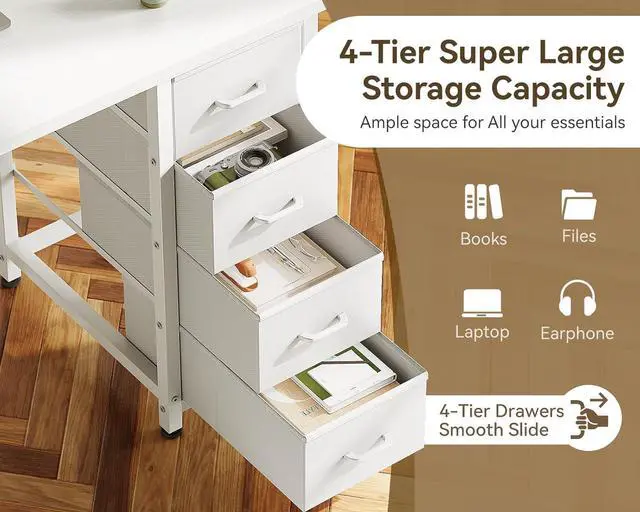 Ample Storage with 4 Fabric Drawers: ODK computer desk features 4 spacious drawers provides ample storage space for your essentials. Perfect for keeping your, bedroom,living room or office organized and clutter-free.