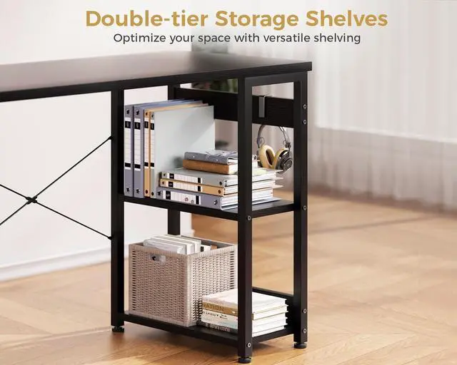 Two-tier Storage ShelvesODK office desk features double storage shelves that help keep your desktop tidy. Use them as a bookshelf or organizer to meet your daily storage needswhether at home or in the office. A perfect addition to any workspace, especially for working from home.