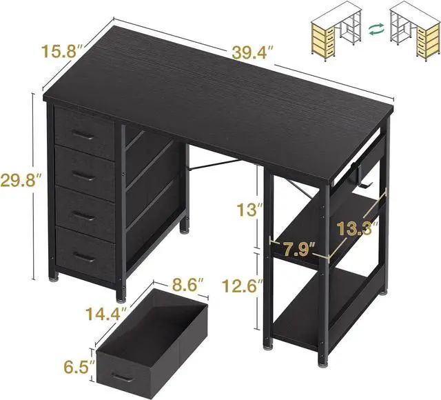 Ample Storage with 4 Fabric Drawers: ODK computer desk features 4 spacious drawers provides ample storage space for your essentials. Perfect for keeping your, bedroom,living room or office organized and clutter-free.