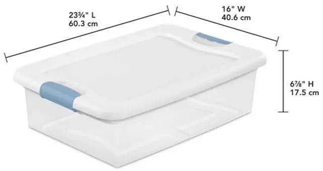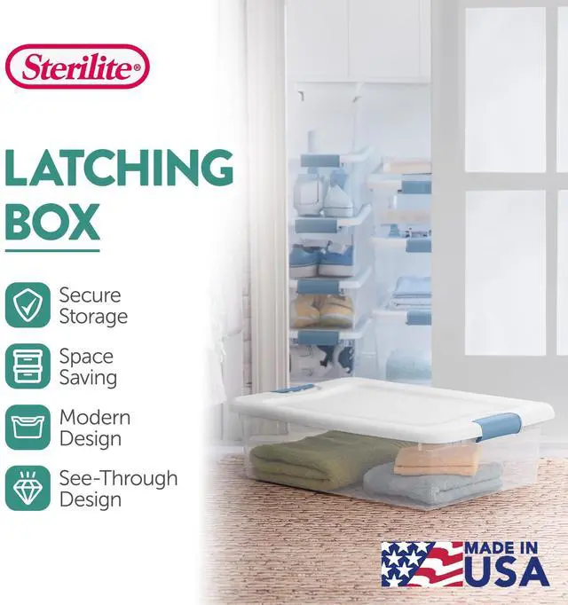 Maximize your storage potential with the Sterilite Latching Box Storage Container Bins. Designed for space-saving efficiency, these heavy-duty, clear plastic boxes offer a versatile and organized solution for all your storage needs. Versatile, durable, and stylish, these stackable bins are ideal for tucking away clothing, linens, office supplies, and many more. The innovative latching design ensures a secure, airtight seal, keeping your belongings protected from dust, moisture, and pests. The transparent base allows for easy identification of contents, while the recessed lid design enables seamless stacking to maximize your available space. Whether you're organizing your closet, garage, or under-bed area, these Sterilite storage bins are a total game-changer. Crafted with durable, BPA-free and phthalate-free plastic, these containers are built to last. The sturdy construction and reinforced handles make them ideal for heavy-duty and long-term storage, ensuring your items remain safe and secure. Multi-purpose and convenient, these Sterilite boxes are a must-have for any well-organized home or office. Elevate your storage game with the Sterilite Latching Box Storage Container Bins. Streamline your space, protect your belongings, and enjoy the peace of mind that comes with a clutter-free environment. Invest in these high-quality, made-in-the-USA storage solutions and take control of your organizational needs today.