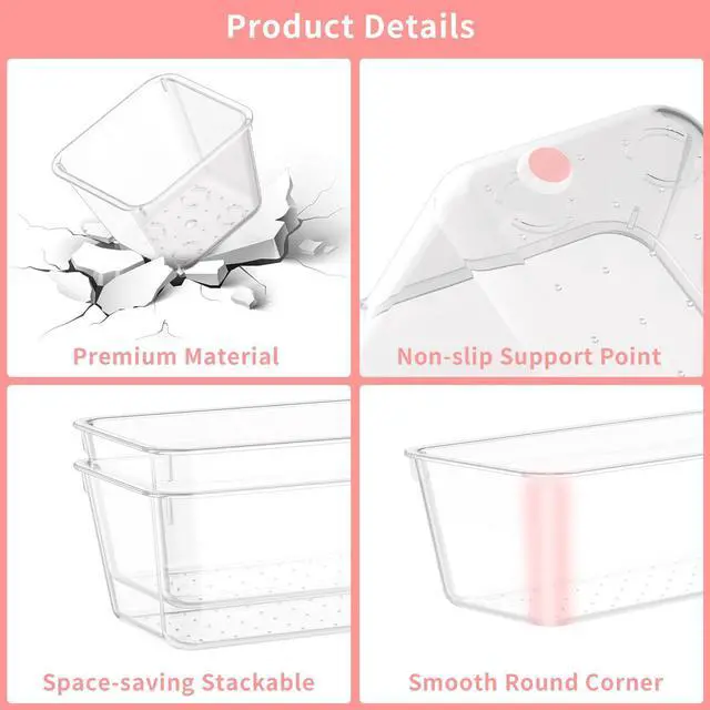 Stackable & Non-Slip Design: When not in use, this transparent storage bins is flexible to save storage space. Moreover, there are equipped with 100 pcs silicone pads, which are pasted on the bottom to prevent the small drawer tray from moving when opening or closing