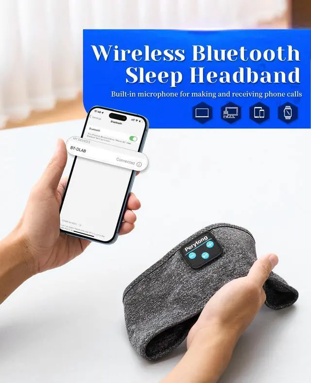 Perytong Sleeping Headphones Bluetooth Headband, Soft Sleep Headphones Headbands,Long Time Play Sleeping Headsets with Built in Speakers Perfect for Workout,Running,Yoga,Travel