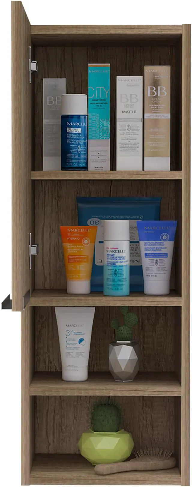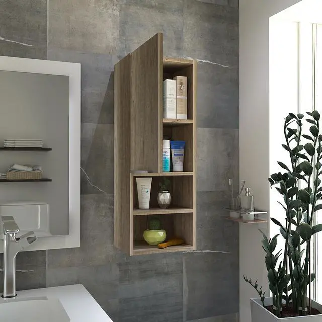 The Milwaukee medicine cabinet is a very functional and spacious mirror medicine cabinet with great features that will stand out: A cabinet door that will give you an elegant look to your bathroom you so much desire. Inside the cabinet, you will find two interior shelves with plenty of room to keep your medicines, lotions, shampoos, or any other product you regularly use. It has two open shelves at the bottom of this cabinet to place your items elevated from the sink, keeping your bathroom organized and well maintained. It is manufactured with treated engineered wood to protect it from the regular exposure to water and humidity found in a bathroom. Product dimensions are 11.81" W x 10.4" D x 32.17" H. Light Oak Finish.