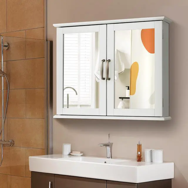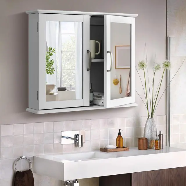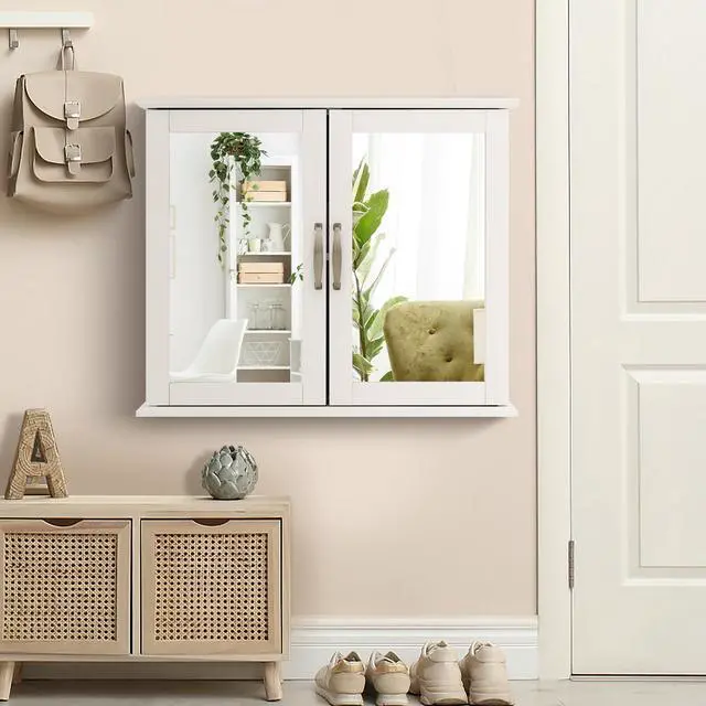Classic Design Ideal of Any Room: The two-door wall cabinet works great in the washroom, laundry room, powder room for organizing small items. And the wooden cabinet can also serve as a dressing mirror next to your door .Classic color and stylish design can perfectly blend with any room décor and style. White retro looking makes the room send out a unique romantic.