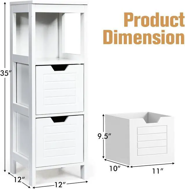 You can put it in the bathroom, living room, bedroom, office and lounge. It has a total of three floors, and you can hide privacy items in two drawers. Drawer handles are hollowed out, which can ensure the safety of your kids. It is made of MDF board, which is wear-resistant, strong in load-bearing capacity and durable. The stable support legs design makes the structure stronger. The smooth surface is easy to clean and maintain. And you can assemble it in a short time.
