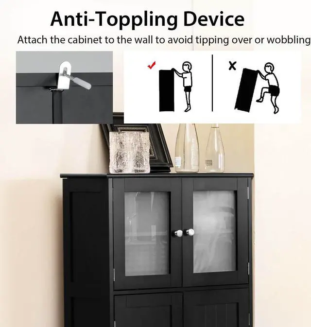 Stable Structure and Versatile Use: Thickened MDF legs provide strong support to the entire cabinet. Moreover, the floor cabinet comes with an anti-toppling device that can attach it to the wall to avoid tipping over or wobbling. It is suitable for various occasions, including the bathroom, living room, hallway, dining room, or anywhere that needs extra storage space.