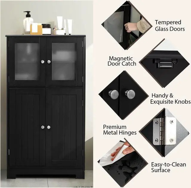 Selected Material and Elegant Design: Made of high-grade MDF and frosted tempered glass doors, this freestanding bathroom cabinet ensures great stability and long-lasting use. The modern style and concise lines make this floor storage cabinet fit well with any home decoration style, which can be a perfect addition to your home.