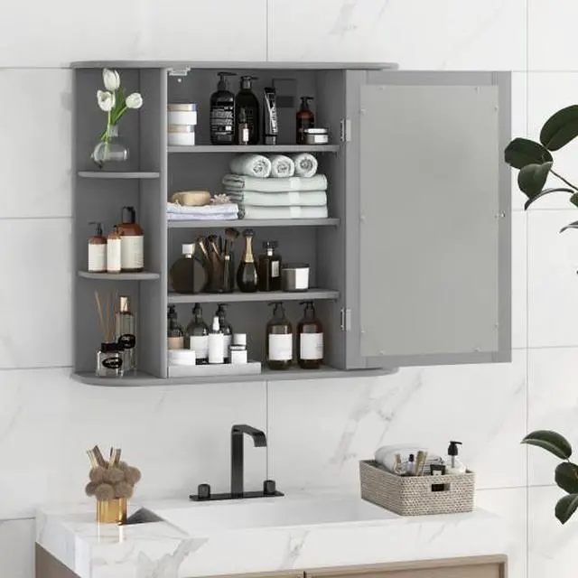 Large Capacity and 3 Adjustable Shelves: This storage wall cabinet combines hidden and open storage space. 6 open side racks offer easy access to tissue boxes, toothbrushes, photo frames and more. 4-tier interior shelf is perfect for towels, shower gels, shampoos and more. Besides, the inner 3 shelves can be adjusted in 3 positions to suit your different needs.