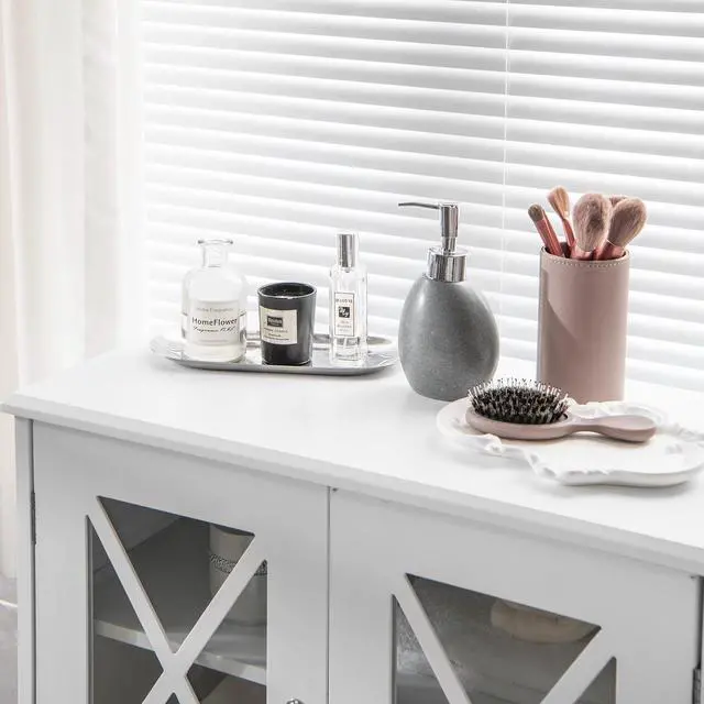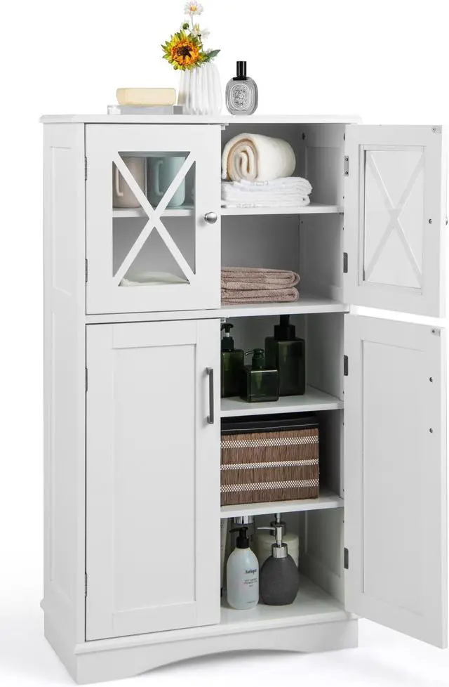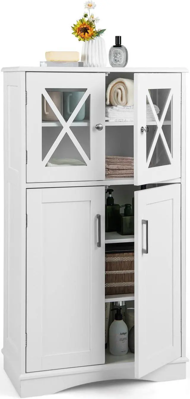 Timeless Design and Multiple Uses: Designed with a simple and elegant appearance, this linen storage cabinet with transparent glass doors perfectly matches various decorating styles. And it is an ideal storage organizer for many scenarios, such as bathroom, living room, kitchen, office and more.