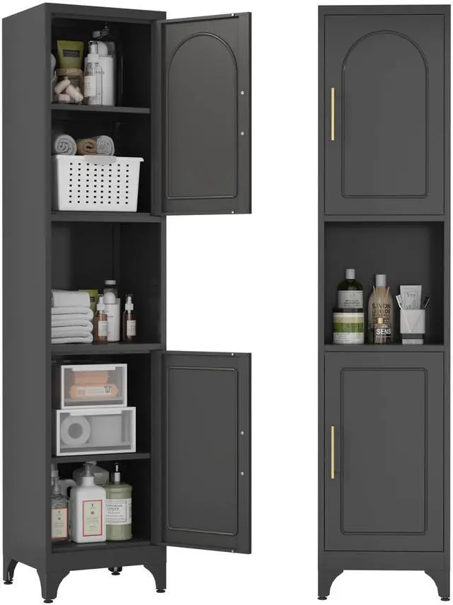 Polup Slim Bathroom Storage Cabinet, 75" Tall Freestanding Narrow Cabinets for Small Spaces, Skinny Metal Storage Cabinet with Doors and Shelves for Living Room, Kitchen, Black
