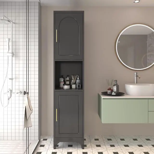 STURDY & DURABLE: Made with high-quality steel and a hollow design, this freestanding narrow cabinet is built to last, offering reliable storage for towels, linens, cleaning supplies, and more