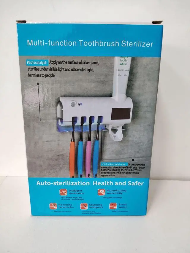 Elevate your bathroom hygiene with the SOEWIOU multi-function toothbrush sanitizer. This all-in-one solution combines a sturdy wall-mounted toothbrush holder, touchless automatic toothpaste dispenser, and intelligent induction sanitization, delivering a clean, convenient, and clutter-free experience. Crafted from durable ABS material, it features a no-drill self-adhesive installation for easy setup on smooth surfaces. With universal compatibility for manual/electric toothbrushes and most toothpaste tubes, its ideal for families, hotels, and travel