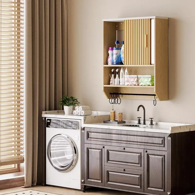 Simple and stylish design: this bathroom cabinet with fluted design over toilet / vanity has one wavy-patterned door and a solid towel rod giving it a modern, simple, and stylish look. It blends with different home decor, adding art while storing.