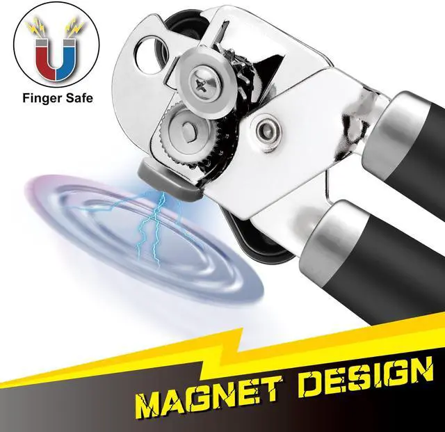 [Smoother Cut] Manual Can Opener with Magnet, Improved Handle for More Comfortable Grip, Handheld Can Openers for Seniors, Heavy Duty Can Opener Smooth Edge, Bottle Opener Easy to Use, Black