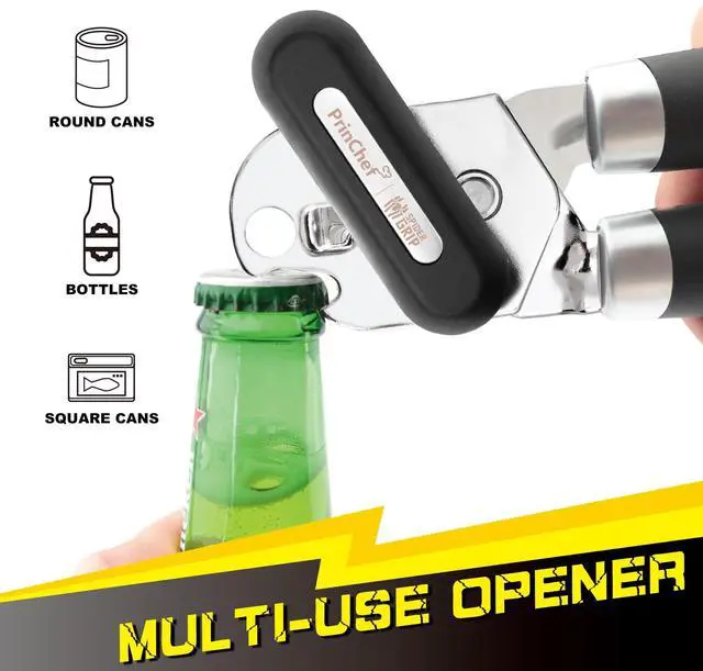 [All-in-one Design] The multifunctional can opener open cans in any sizes and shapes with ease. The built-in beer bottle opener is a great bonus when friends coming to party. A must-have kitchen tool kitchen essentials.