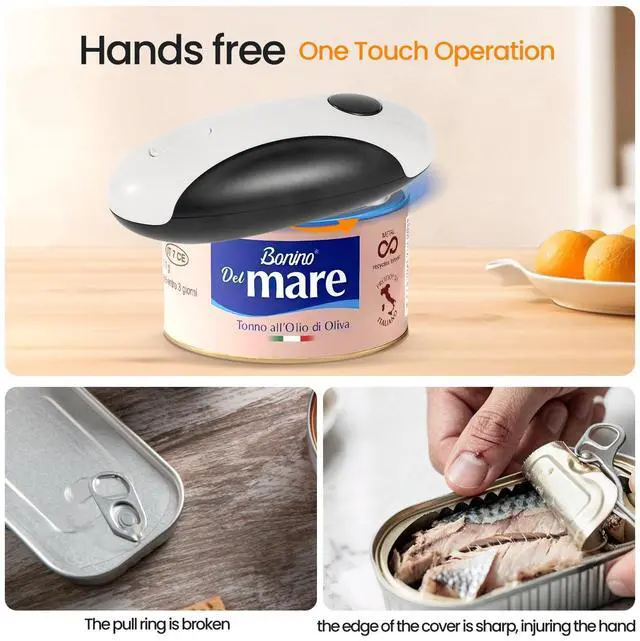 2.Powerful & Versatile for All Cans:This powerful electric can opener effortlessly handles most metal cans, from food to pet food, including round, square, and oval shapes. Its robust motor and optimized blade ensure a clean cut every time without touching your food, perfect for those with limited hand strength.