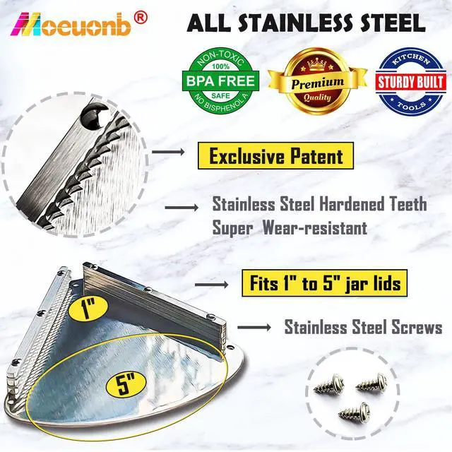 Reasonable design, stable structure, never rust,Heavy stainless steel, 0.6lb, twice the weight of plastic jar opener