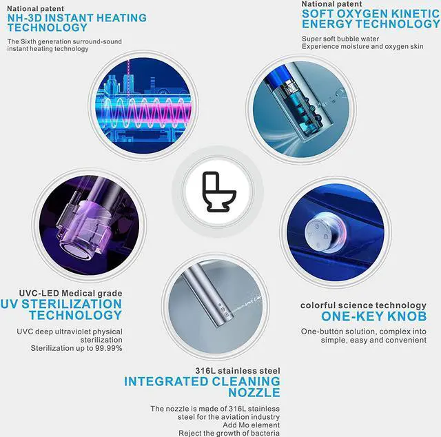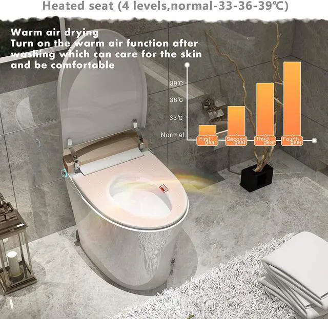 [Air purification]: The smart toilet uses a powerful air filter to effectively clean the air around the toilet. Keep your bathroom smelling fresh.