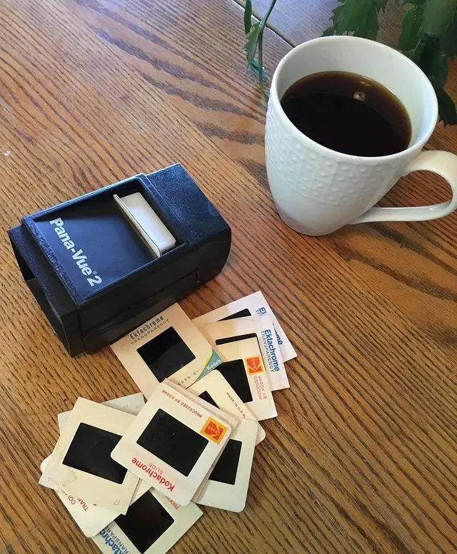 2X magnification on 1 7/8" screen with folding stand Backlit for easy viewing Uses (2) AA Batteries (NOT Included) Load/View one slide at a time Can be handheld or set on tabletop