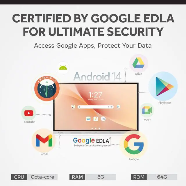 The AHA Interactive Flat Panel Display Hybrid 5000 is equipped with the latest Android OS and a powerful Octa-core CPU to deliver fast and reliable performance.