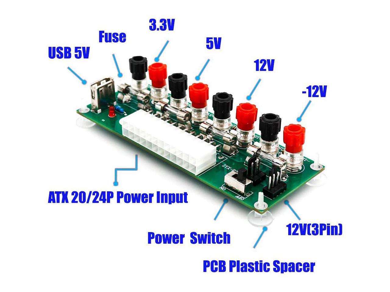 On-board standard 24pin ATX port, power indicator and power switch easy to control ideal to DIY low voltage power supply for developing physical computing projects (embedded systems)