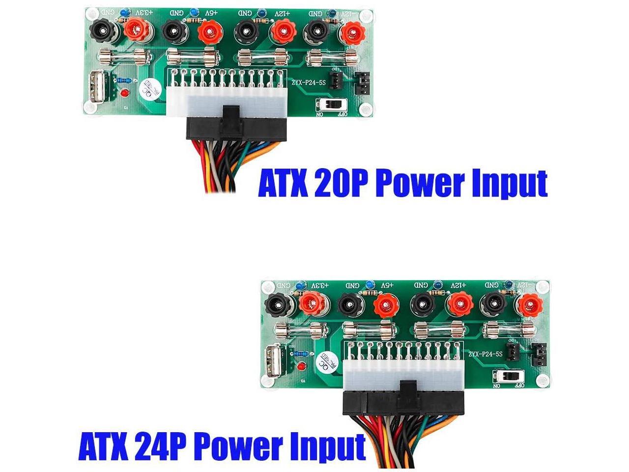 JMT 2pcs 20/24Pins ATX Benchtop Power Adapter Board with USB 5V Port Computer ATX Power Supply Breakout Adapter Module (Green)