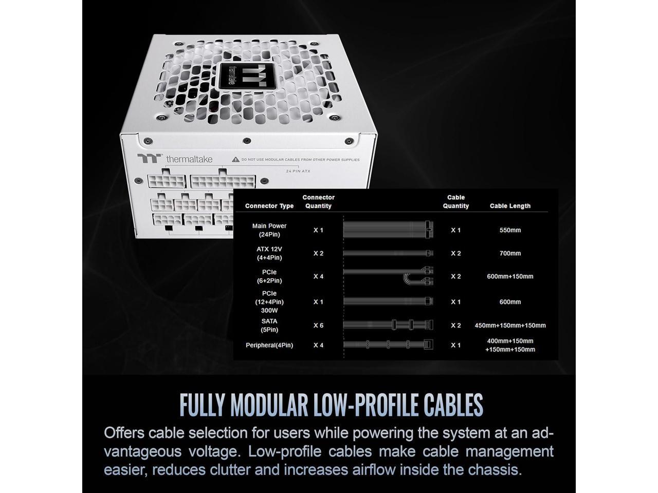 - Fully Modular Design: Low-profile white cables simplify cable management and improve airflow.