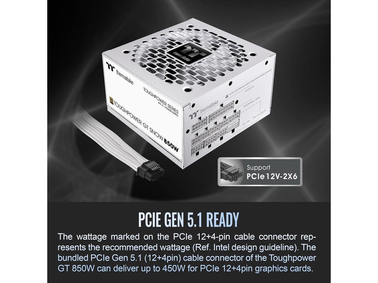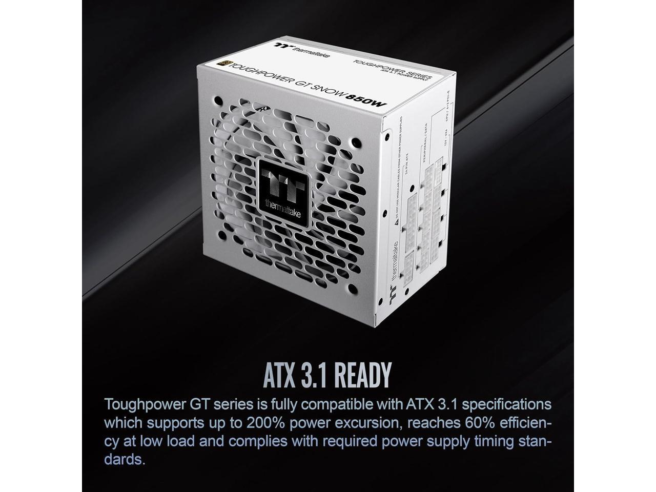 Thermaltake Toughpower GT 850W Snow ATX 3.1 Power Supply 80 Plus Gold Efficiency Smart Zero Fan Native 600W PCIe 5.1 Connector PS-TPT-0850FNFAGU-W