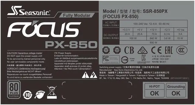 Seasonic FOCUS PX-850 SSR-850PX 850W 80+ Platinum Full-Modular Power Supply PSU