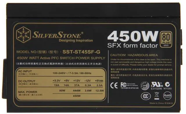 SFX Series 450W Power Supply After successfully revolutionizing both HTPC and SFF market segments with innovative chassis designs, SilverStone engineers continue their push for advancement in these categories by releasing a true upgrade-worthy small form factor power supply, the ST45SF. This SFX unit is compatible not only with chassis that use SFX power supplies but also in a smaller ATX chassis with the included adapter bracket. Despite its small size, the ST45SF has features that one would expect from an elite ATX power supply such as 80 PLUS Bronze level of efficiency, temperature controlled fan, 50° temperature rating, and reliability for 24/7 operation.