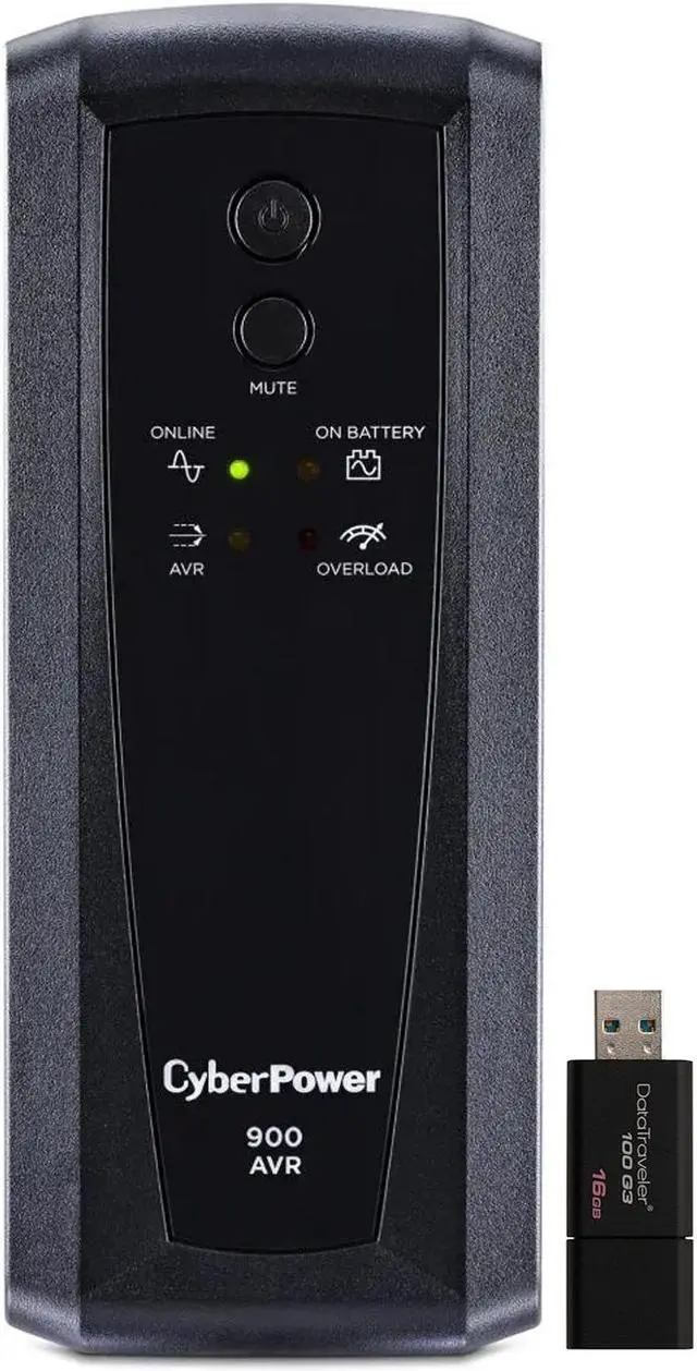 CyberPower UPS Systems CP900AVR Tower UPS Bundle Including 16GB USB Drive