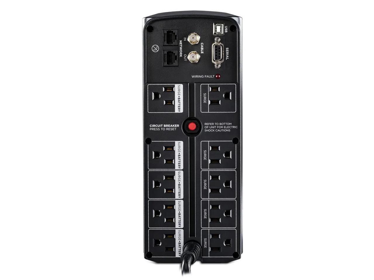 - Enhanced Outlet Design for Convenience: Equipped with transformer-spaced outlets, the UPS accommodates large transformer-based plugs without obstructing access to other outlets, providing added convenience and flexibility in device connectivity