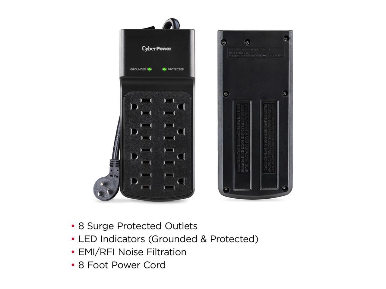 CyberPower B808 8-Outlet Essential Surge Protector with 8' Cord, Black